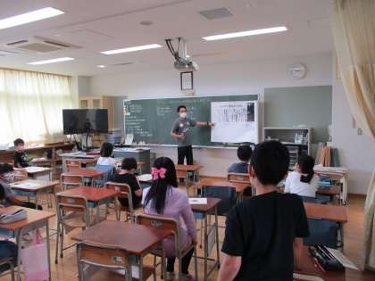 5年生の3時間目の授業は総合的な学習の時間でした。SDGsとは、何ぞや!新しいテーマだけに、興味津々で聞いていました。