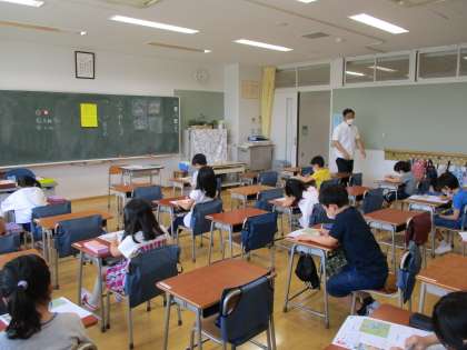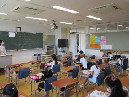 2年生は、算数のテストをしていました。みんな真剣に取り組んでいました!!