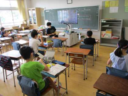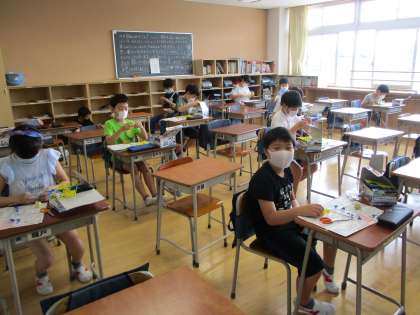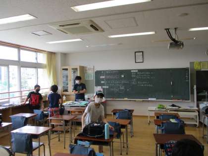 理科でモーターをつかってプロペラを動かし、電気のはたらきを学びました。下の写真は下校の準備の様子です。