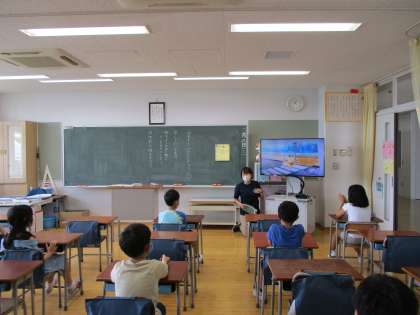 朝の会の様子です。学校内外のきまりについてお話がありました。