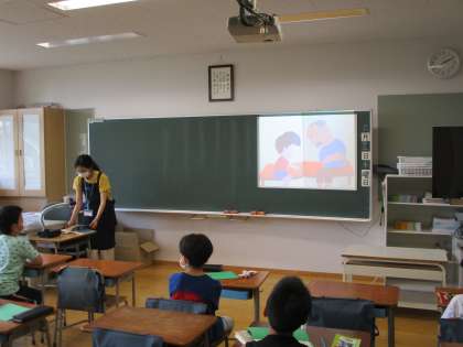3年生、2時間目の授業の様子です。ALTの先生の授業も始まりました。図書の先生の読み聞かせもありました。