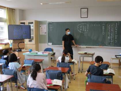 国語の授業でした。CDから流れる話を聞きとって、問題に答えていました。