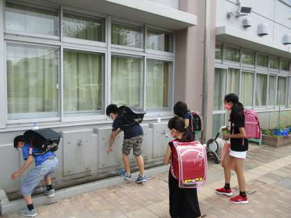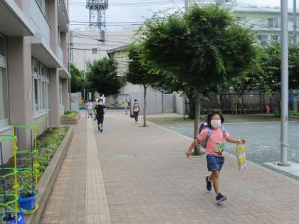 午前グループ元気に登校しています。
