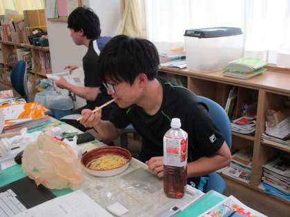 今日は、2年生の先生を中心にお伝えします。再登場の藤原先生、今日も麺でした。ごめんなさい笑(藤原先生談)