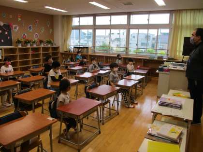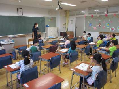 1年生、1時間目の様子です。来週からいよいよ全員がそろいますね。どんなお友達がいるか楽しみですね!!