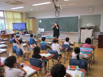 1年生の授業は、図工、音楽、国語の学習でした。専科の先生とも、早くなかよくなれるとよいですね!