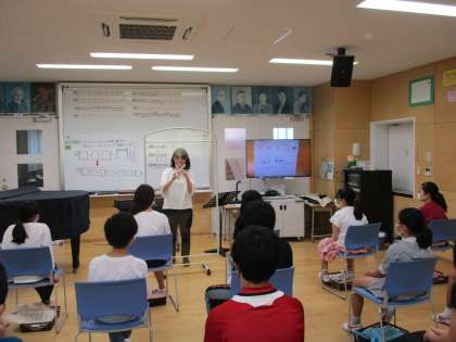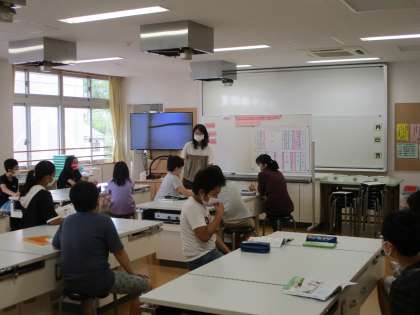 6年生は、人数が多いので1クラスを2つに分けて、音楽と家庭科に分かれて授業をおこないました、