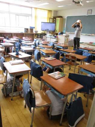 今年度初の避難訓練がありました。地震が起きた想定で、行いました。