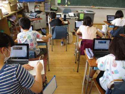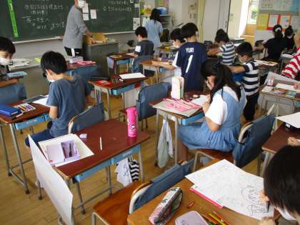 5年生、英語、総合的な学習の時間、図工の様子です。
