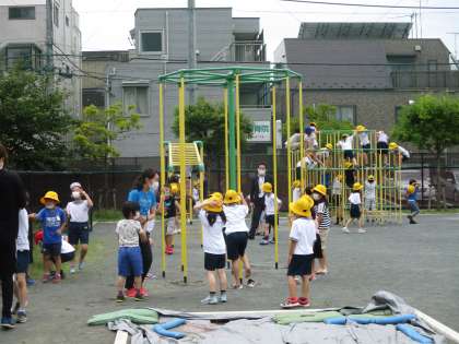 今日の中休みは、1,2年生が校庭で遊べます。先生たちも一緒に遊んでいました。