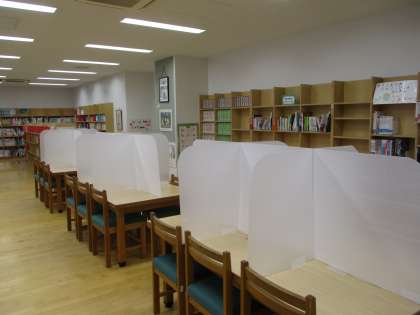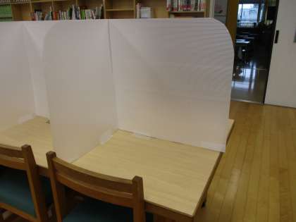 図書室の机にパーテーションの設置が完了しました。少しずつ図書室での読書も始まります。