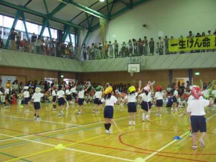 5月29日(日)八幡山小学校の体育館をお借りして運動会を行いました。雨が降っていたので、校庭で行うことはできませんでしたが、体育館の中で元気いっぱいに行うことができました。赤白の応援団長の掛け声が響き、応援合戦も盛り上がりました。みんなの声援で、子どもたちの気持ちが一つになって、演技、競技に集中して取り組みました。