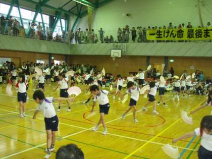 4年生の『はねこおどり』は、宮城県に伝わる民舞で、大地震で被災された東北地方、そして日本を応援する気持ちで元気いっぱい踊りました。精一杯はねて、跳ぶ姿に、大きな拍手が送られました。