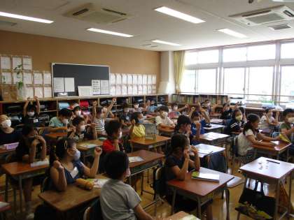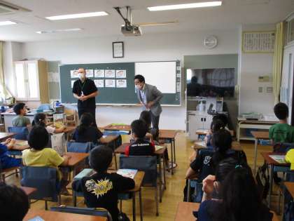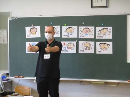 あいさつの学習でした。ALTの先生と白石先生が教えてくださいました。