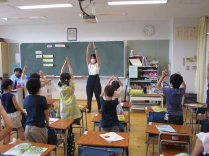 体を動かして楽しく学習しました。音楽は、山口先生が教えてくださいます。