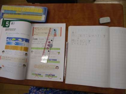 長さの学習でした。センチメートルなんていう名前も出てきました。がんばっていますね!