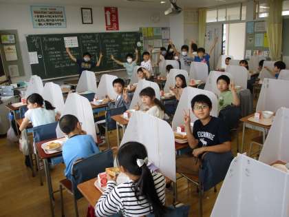 1,2、5年生の給食の様子です。今日も給食美味しかったです。ポトフはしっかりとお肉も入っていて絶品でした。