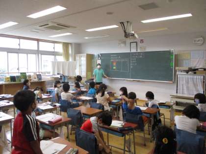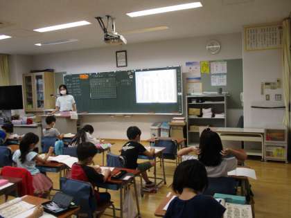 2年生、算数、国語、1年生を迎える会の準備の様子です。