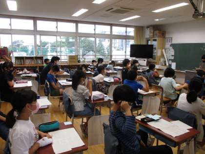 5年生、総合的な学習の時間の授業の様子です。発表をしっかり聞いてメモをとたtり、まとめたりしました。