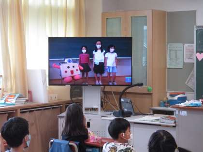 朝の時間に、1年生歓迎ビデオ集会がありました。