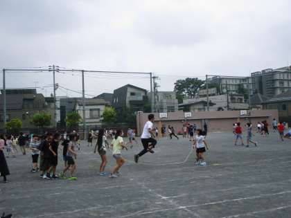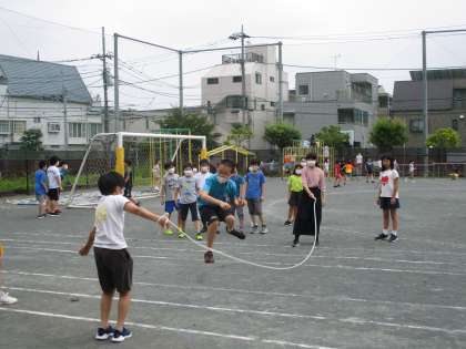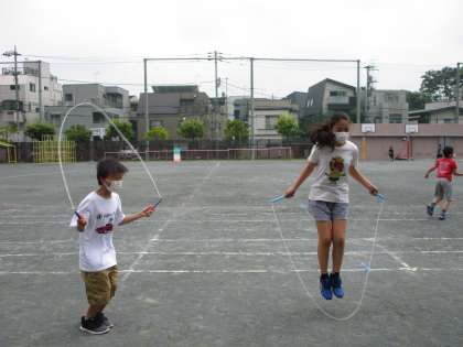 昼休みは高学年です。短縄、大縄となわとび人口が増えています!