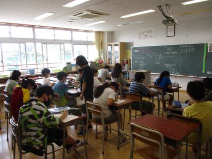 算数の勉強でした。教室もゆったりとしています。