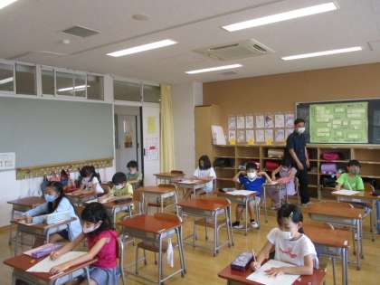 1年生はおおきなかぶ、2年生は算数の勉強をしました。