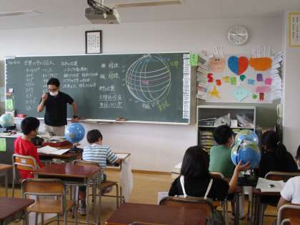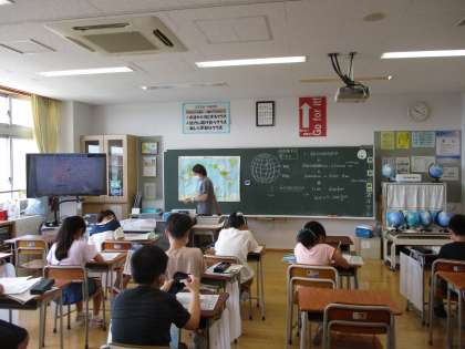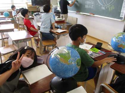 5年生は社会の勉強をしました。地球儀を用いて楽しそうでした!