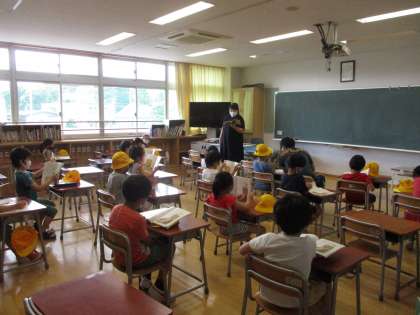1年生は、「おむすびころりん」で音読発表会をしました。