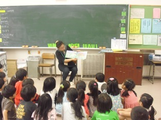 読書週間中には『図書サポーター』のお父さん、お母さんが『朝の読み聞かせ』と『図書の時間の読み聞かせ』をしてくだいます。7日にも読みきかせをしてくださり、子どもたちは目をきらきら輝せ、本の世界に入っていました。