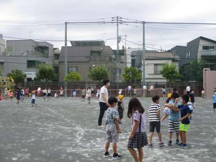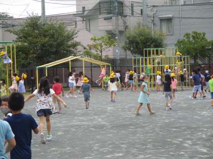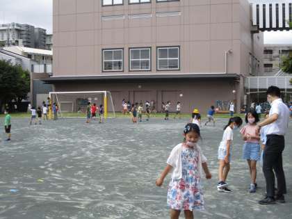久しぶりに会った友達と楽しそうに遊んでいました。今日は、低学年が校庭で遊べました。