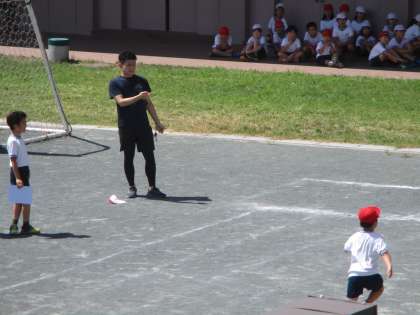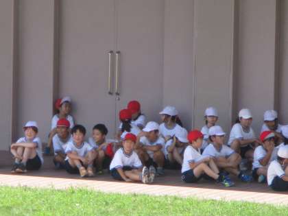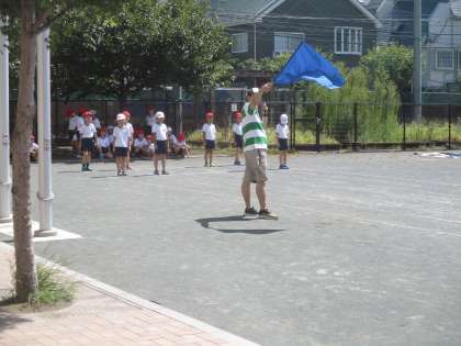熱中症予防でWBGTを計測しながら外体育を行いました。短時間で無理なく取り組んでいます。