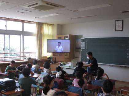 今朝は放送朝会がありました。校長先生からは、災害や台風などの講話がありました。