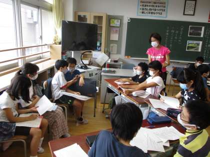 どちらを選びますか、という単元でそれぞれの立場で話し合いをしました。担任の青木先生が退職後に住むのは、田舎がよいか、都会がよいか。