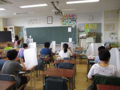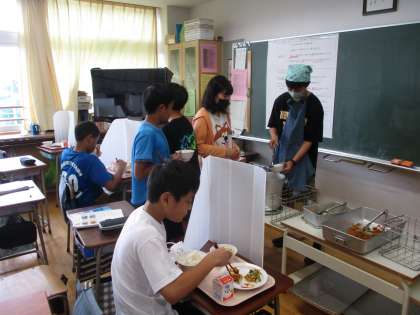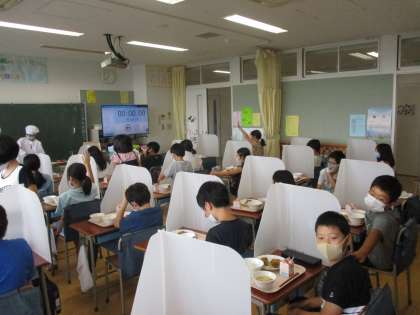 給食の時間は、あまり友達とおしゃべりはできないけど、みんな幸せそうです。今日もおいしかったです!