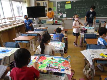 図工で絵具をつかって絵を描きました。体育は遠投?に挑戦!