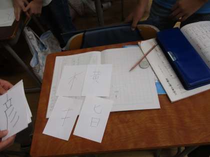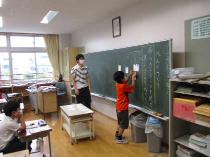 漢字のへんとつくりの学習をしました。クイズ形式で互いに問題を出しあいました。