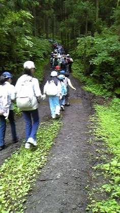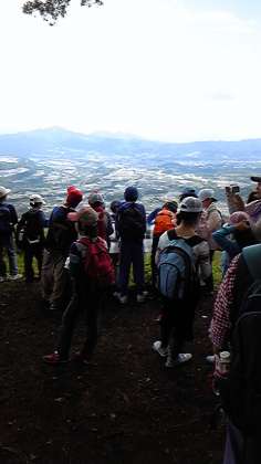 雨乞山山頂に到着。途中、急なところもありましたが、みんなよくがんばりました。頂上からの景色は最高!川場村のたんぼが光ってきれいです。