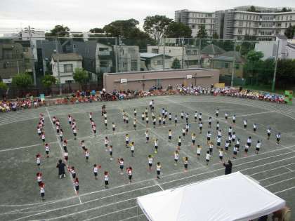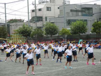 1年生の表現運動、ガッツです。初めての運動会がんばっていました!