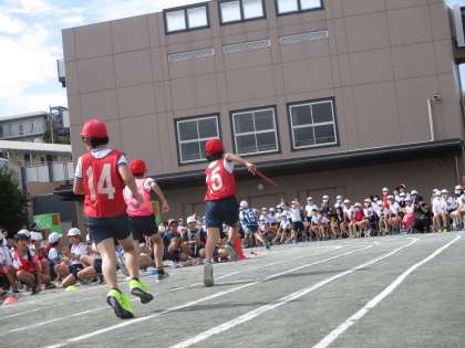 高学年リレー男子!迫力がありますね!明日はどうなるでしょうか。