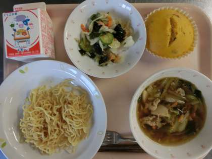 今日は、ぼくがラーメンたべてるとき の絵本より、長崎風ラーメンを給食室で作りました。