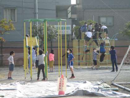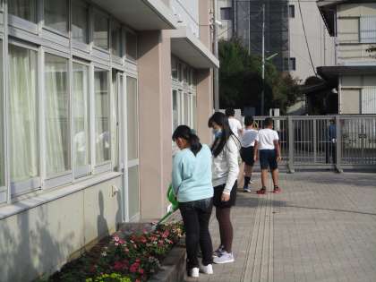 まさに小春日和!元気に遊んだりお花に水をやったりしていました。