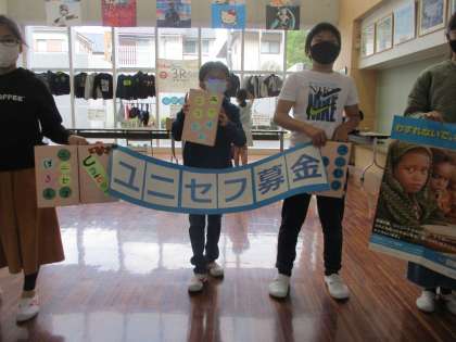月曜日から始まった国際理解週間の一環で、国際委員会によるユニセフ募金がはじまりました。いつにない盛り上がりをみせていました!