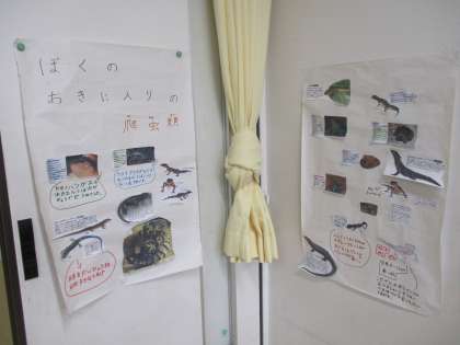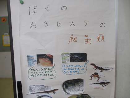 2年生の教室に、ばくのおきにいりの爬虫類という掲示がありました!とてもよいものを見せてもらいました。これをつくってくれた子が楽しそうに作業をしている姿が目に浮かびます。なんだかよい気分になりました。ありがとうございました。