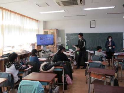 4,5年生の授業の様子です。4年生はALTと一緒に学習しました。5年生は、クラスを2つに分けて行っています。