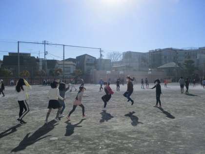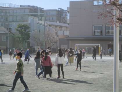 きれいな青空の下、元気に遊んでいる子どもたちです。