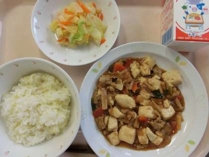 今日は、絵本 おとうふやさん より、たくさん豆腐が届けられました。豆腐屋さんの朝はとても早く、まだ暗いうちから豆腐作りが始まります。豆腐がどんなふうに作られているのか、図書室の本を読んでみてください。