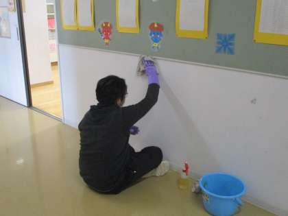 恒例の壁清掃が始まっています。上小の廊下が明るいのはみんなできれいに使っていることもありますが、主事さん方が毎年丁寧に壁をきれいにしてくれているからです。ありがとうございます。