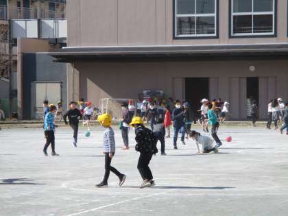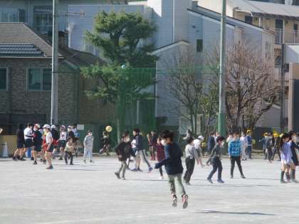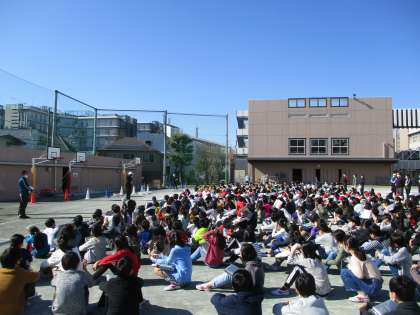 今月の避難訓練は中休みになったときに地震が起きた想定です。みんな静かに落ち着いて避難できました。訓練のあとに中休みになりました。