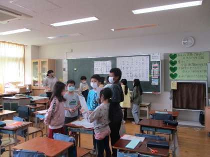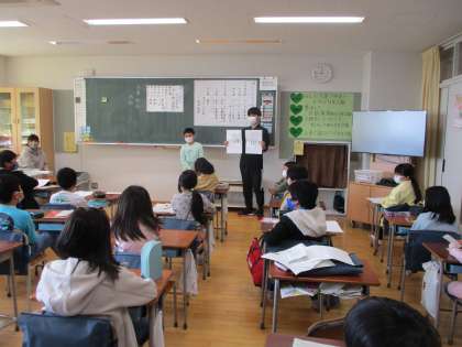 調べて話そう、生活調査隊という単元で身近な事柄についてアンケートをとって、結果をまとめたものをみんなに発表しました。